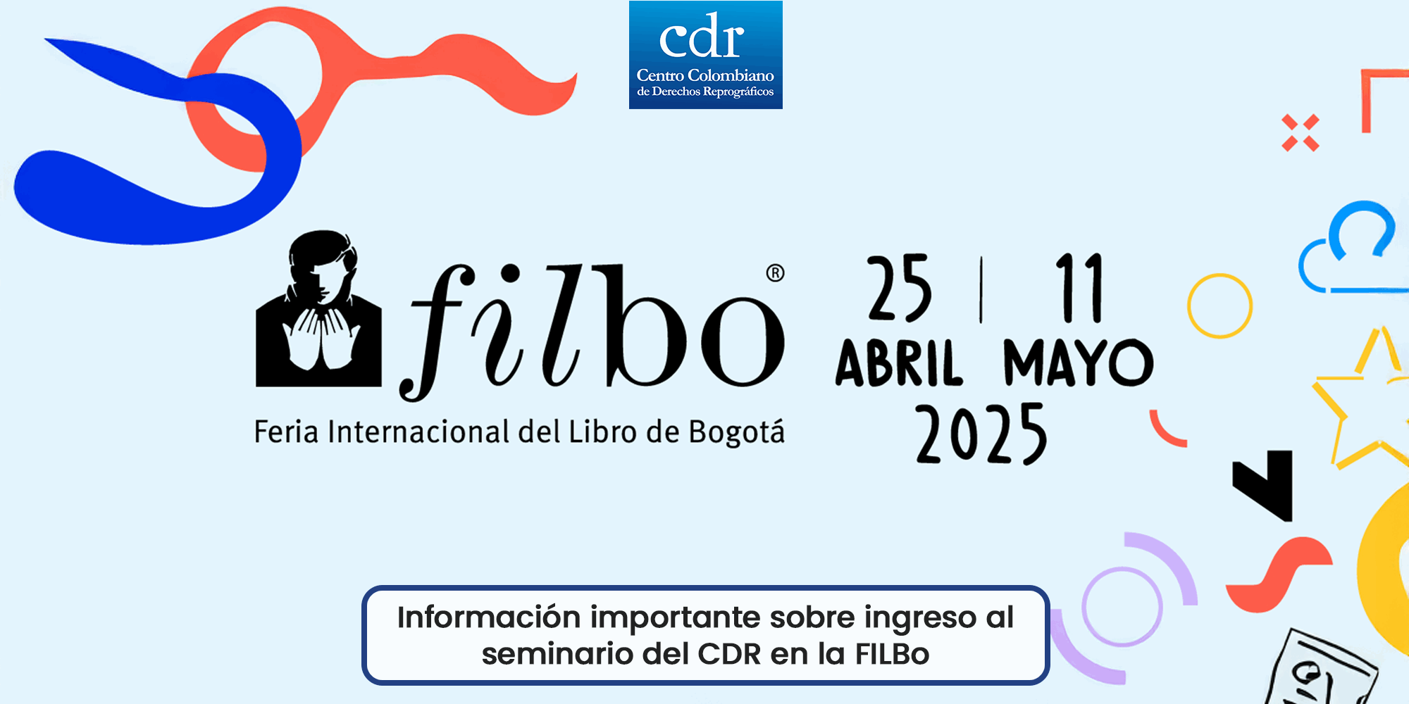 Les informamos que el personal del CDR estará entregando las boletas de ingreso a la FILBo a los inscritos por la entrada ubicada sobre la Avenida La Esperanza, entre la 1:30 p. m. y las 2:15 p. m.